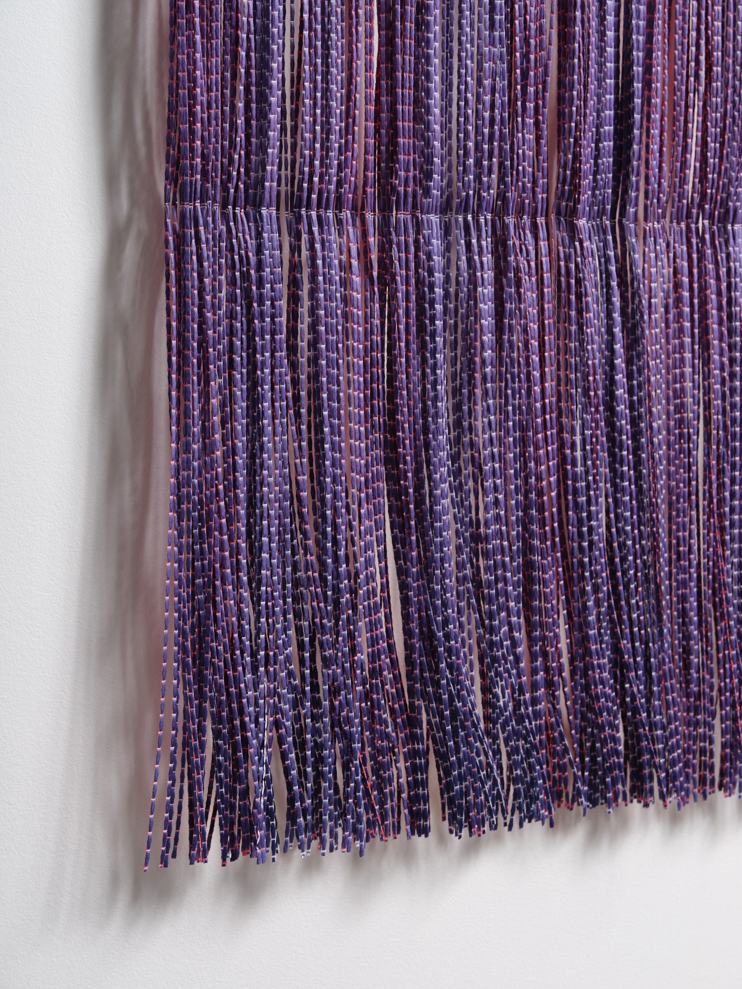 Te Ao Tua-ātea is a sculptural work comprised of the disentanglement of the tight mechanic weaves that make up plastic material, appearing as a semblance to the non-customary weaving tradition. Through movement, Te Ao Tua-ātea expresses its agency and mauri (lifeforce, vital essence) as a work that is responsive to its environment and is attuned to the much larger conceptions of the material and immaterial worlds of Te Ao Māori. Te Ao Tua-ātea is described as a ‘veil’, the thin space between the past and the present, between the dead and the living and a line in which the spiritual and physical converge.