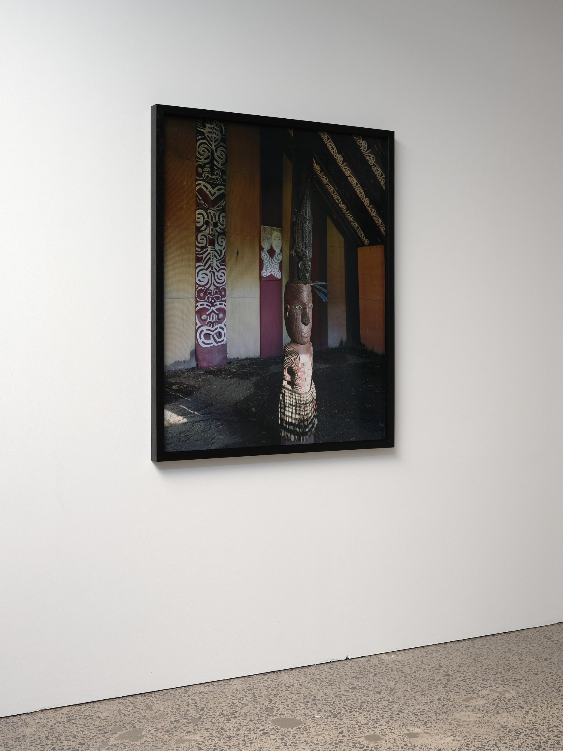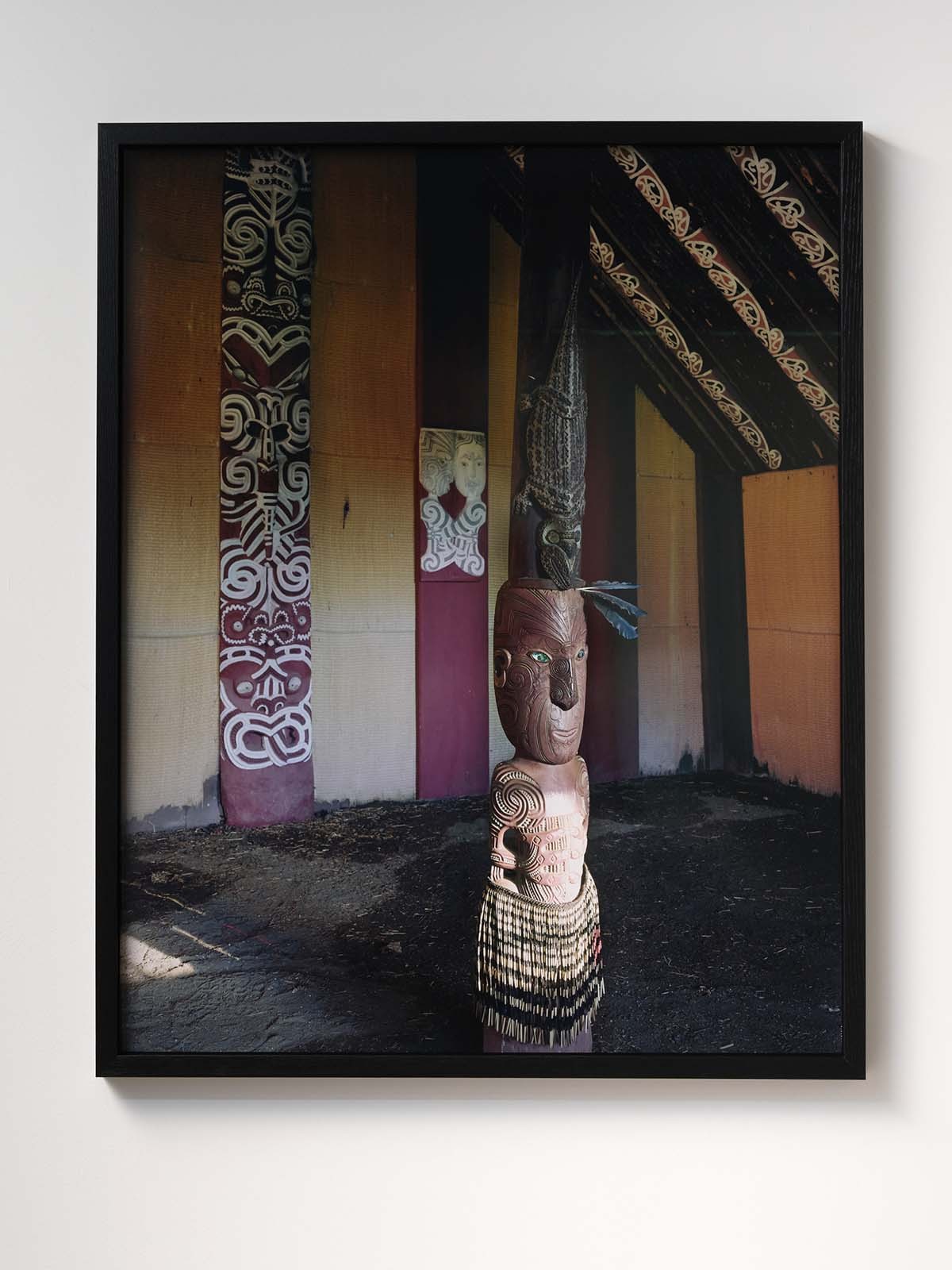 In 2000, Mark Adams as part of his ongoing programme to document the complete corpus of whakairo of Tene Waitere, visited Hinemihi in Surrey and created the suite of fifteen images of which this interior forms part.