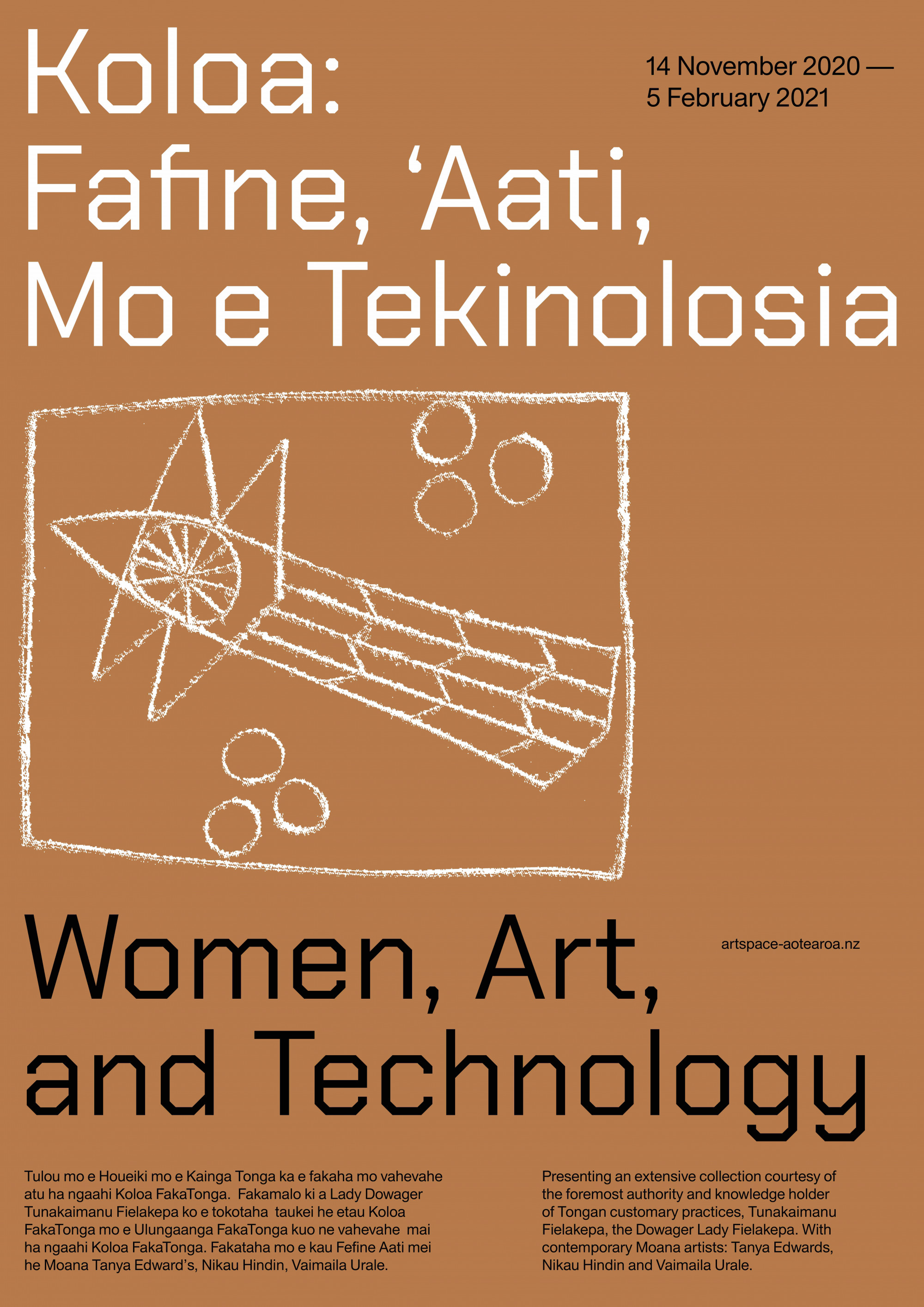 Oku hounga ia a e Artspace Aotearoa ke fakaha a e Koloa: Fafine, ‘Aati, Mo e Tekinolosia / Women, Art, and Technology. Ko e tu'o tolu eni e fakaha ngaahi Koloa ni; 'Oku fakamamafa pea e katonga'i, e mahuinga pea mo e laukau 'aki etau Koloa FakaTonga a ha'a Fafine, ngaue fakamea'a , ngaahi founga motu'a, mo e fakakoloa aki etau ngaahi katoanga fakafonua