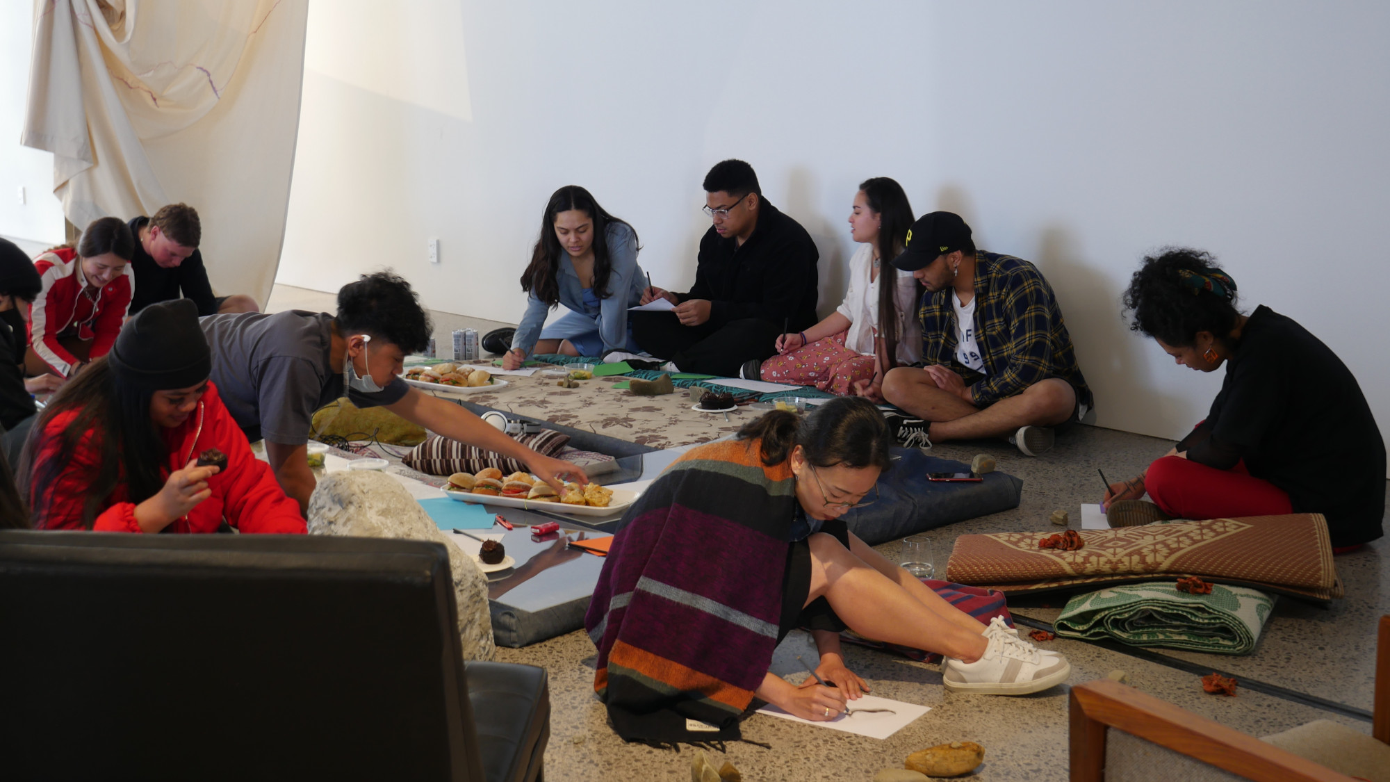 pango is black, mangu is too is a drawing workshop with Ashleigh Taupaki. Visitors will be drawing with charcoal, ink pens, and colour pencil - exploring rocks, making connections with non human others - display drawings alongside māunga sculpture to represent thought and the status of mountain tops as the thin mesh between this physical world and the spiritual world - Māori relationships with place and things through drawing practice.