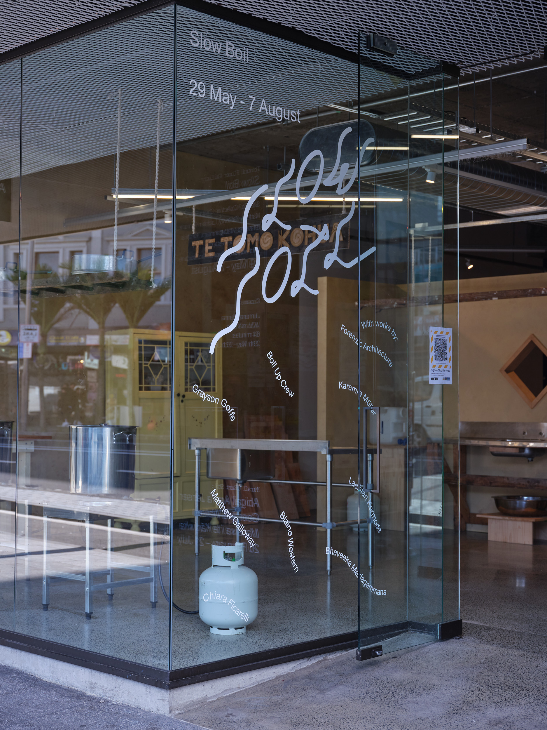 Artspace Aotearoa is proud to present Slow Boil (29 May - 7 August) an unfolding exhibition and public creative research project. Slow Boil is co-created by kaupapa Māori community group and kai security advocates Boil Up Crew and a group of contributing practitioners spanning architecture, community advocacy, design, food sovereignty, software and the visual arts. During a series of wānanga, works will be collectively produced and installed in the exhibition space alongside existing investigative works by Forensic Architecture.