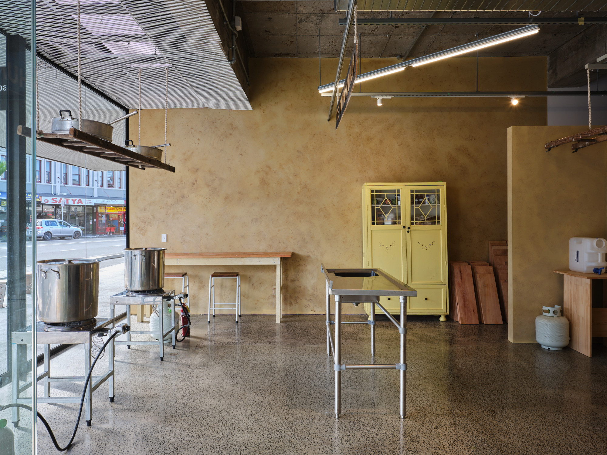 A personified space occupied by The Boil Up Crew in this recreated functioning kaauta. It draws on the ritual of Mahinga-kai, the process of boiling and the knowledge transferal that kai possesses. Embedded in that metabolic transferal of knowledge is too, lived experience, that could be a way of mapping systems, or recipes of contemporary colonial experiences capable of nourishing resilient ecologies.