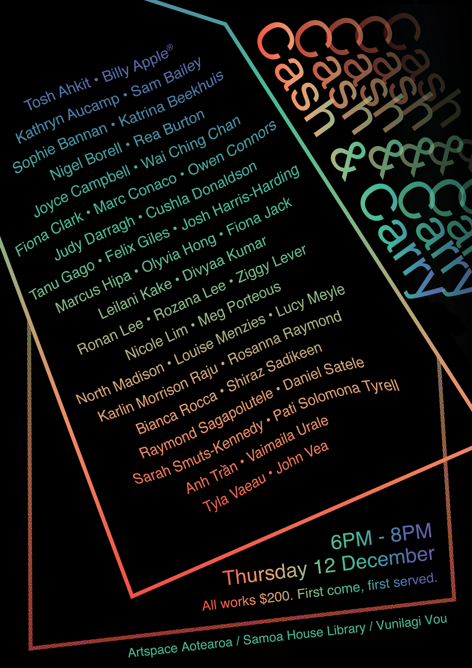The purpose of the cash & carry is to raise for funds for 2020 programming initiatives for Samoa House Library and Vunilagi Vou, who we are collaborating with on this event. All of the works included will be sold for $200, with half of the proceeds going back to the artist, and the other $100 split between Samoa House Library and Vunilagi Vou. As this is a blind cash & carry, the works will not be announced before the event, only the names of the participating artists.