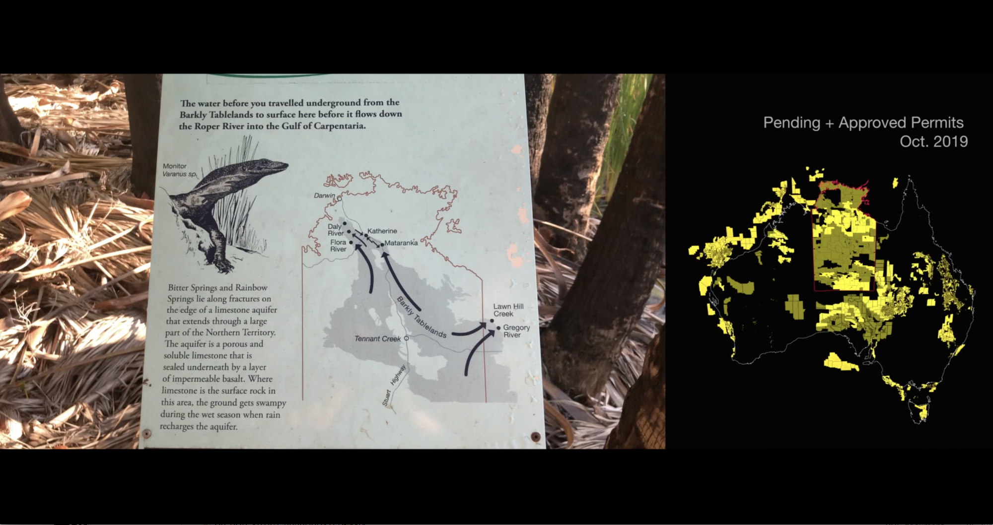 Left: Map connecting Mataranka thermal springs to NT groundwater flows.