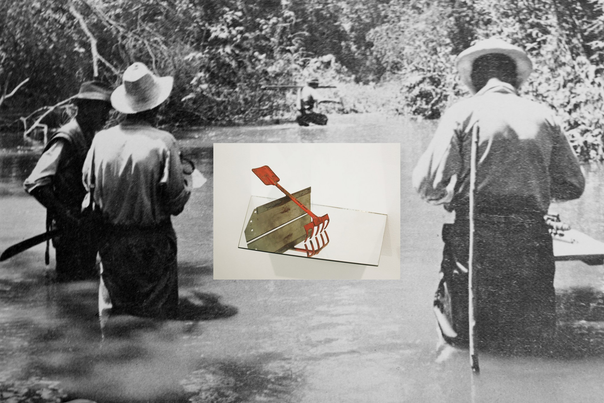 Tropical Dutch disease, Ana Alenso, 2014. Found objects and an anonymous photograph of one of the first oil explorations in Venezuela.
