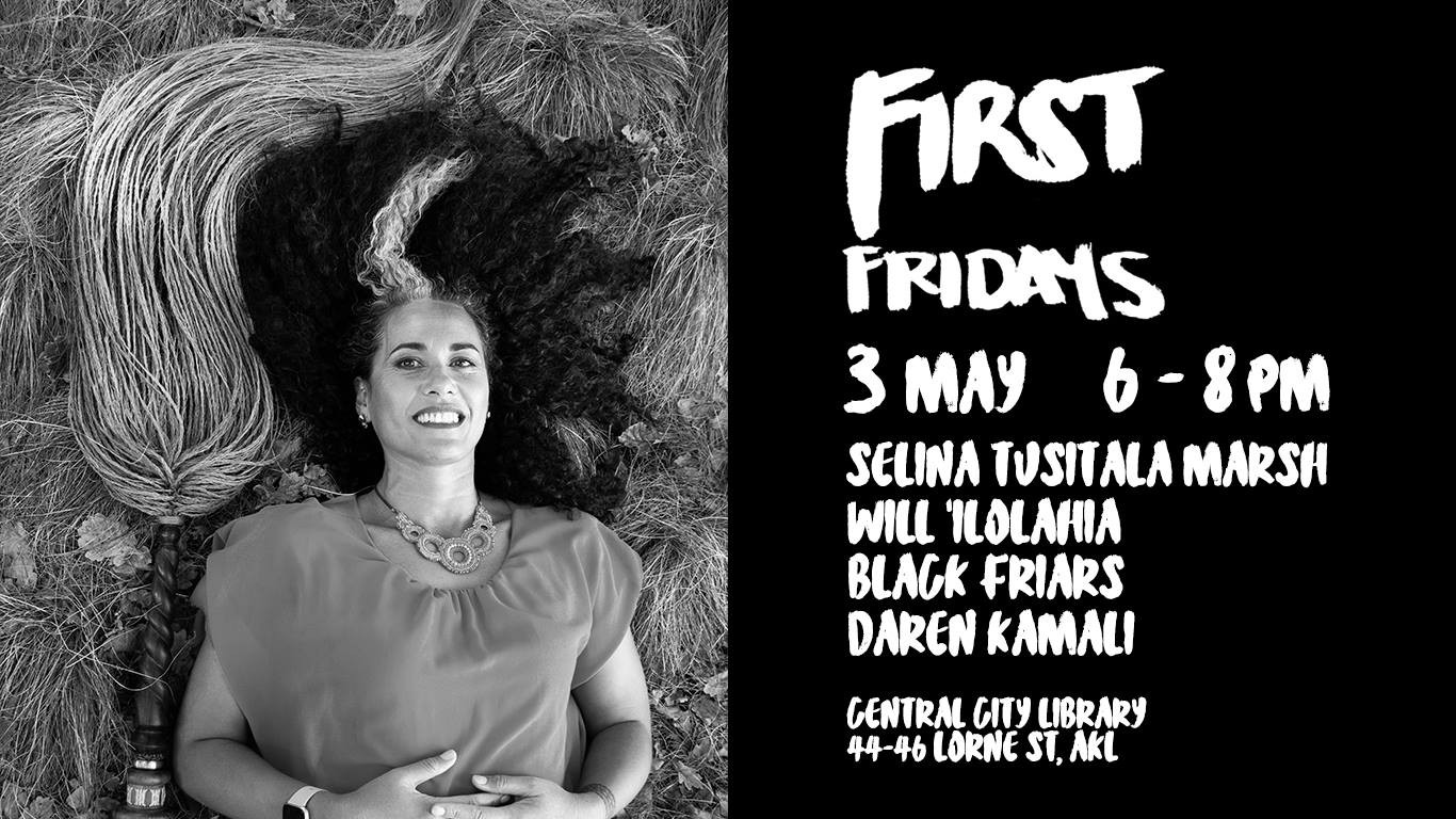 First Fridays feature's current New Zealand Poet Laureate Selina Tusitala Marsh, Will 'Ilolahia and a performance by the Black Friars. Hosted by Daren Kamali at the Central City Library, 44-46 Lorne St, Auckland.