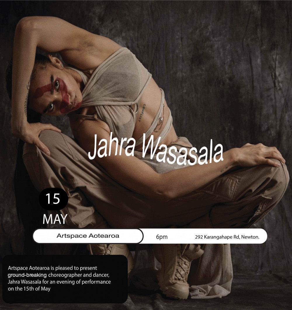 Artspace Aotearoa is pleased to host Jahra Wasasala for an evening performance on the 15th of May.