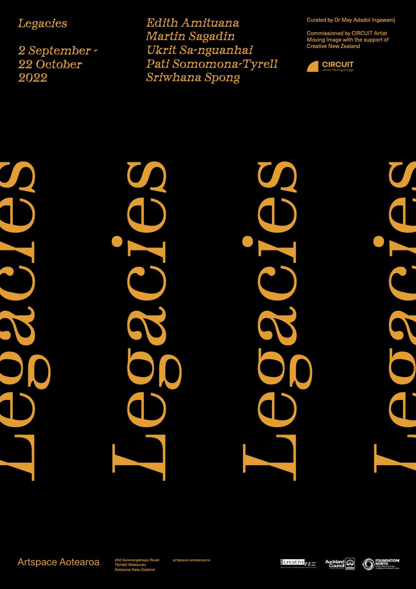 Legacies includes five short films for cinema commissioned by CIRCUIT Artist Moving Image. Curated by CIRCUIT curator-at-large Dr May Adadol Ingawanij, Legacies includes work by Edith Amituanai, Martin Sagadin, Ukrit Sa-nguanhai, Pati Tyrell and Sriwhana Spong.