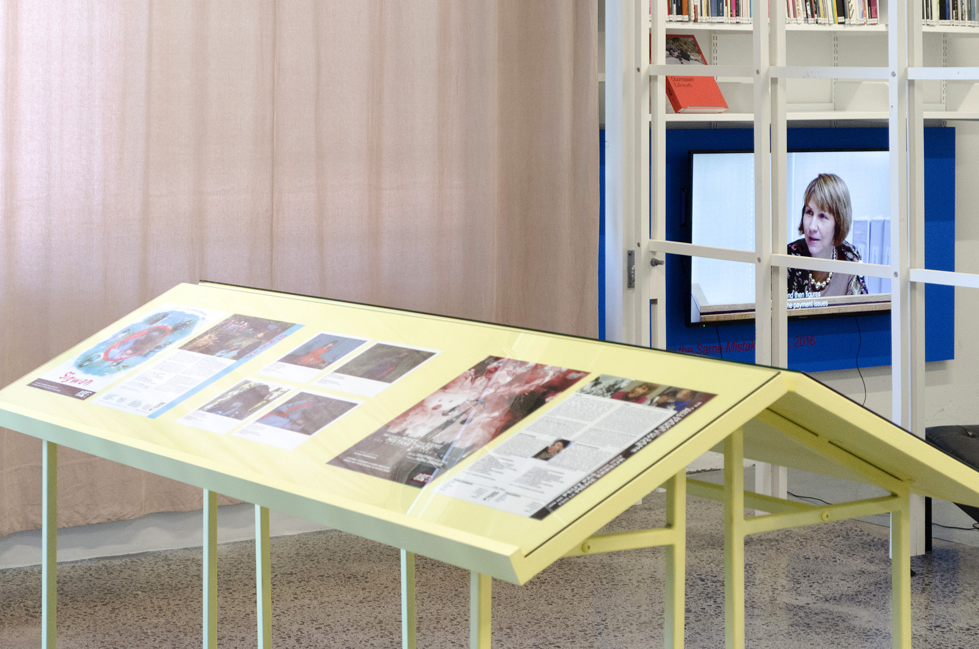 Selected ephemera, vitrines. Courtesy the artist and the National Film Board of Canada. Installation view.