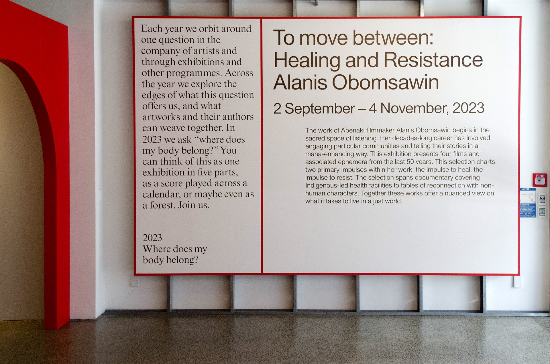 To move between: Healing and Resistance, Alanis Obomsawin. Installation view.