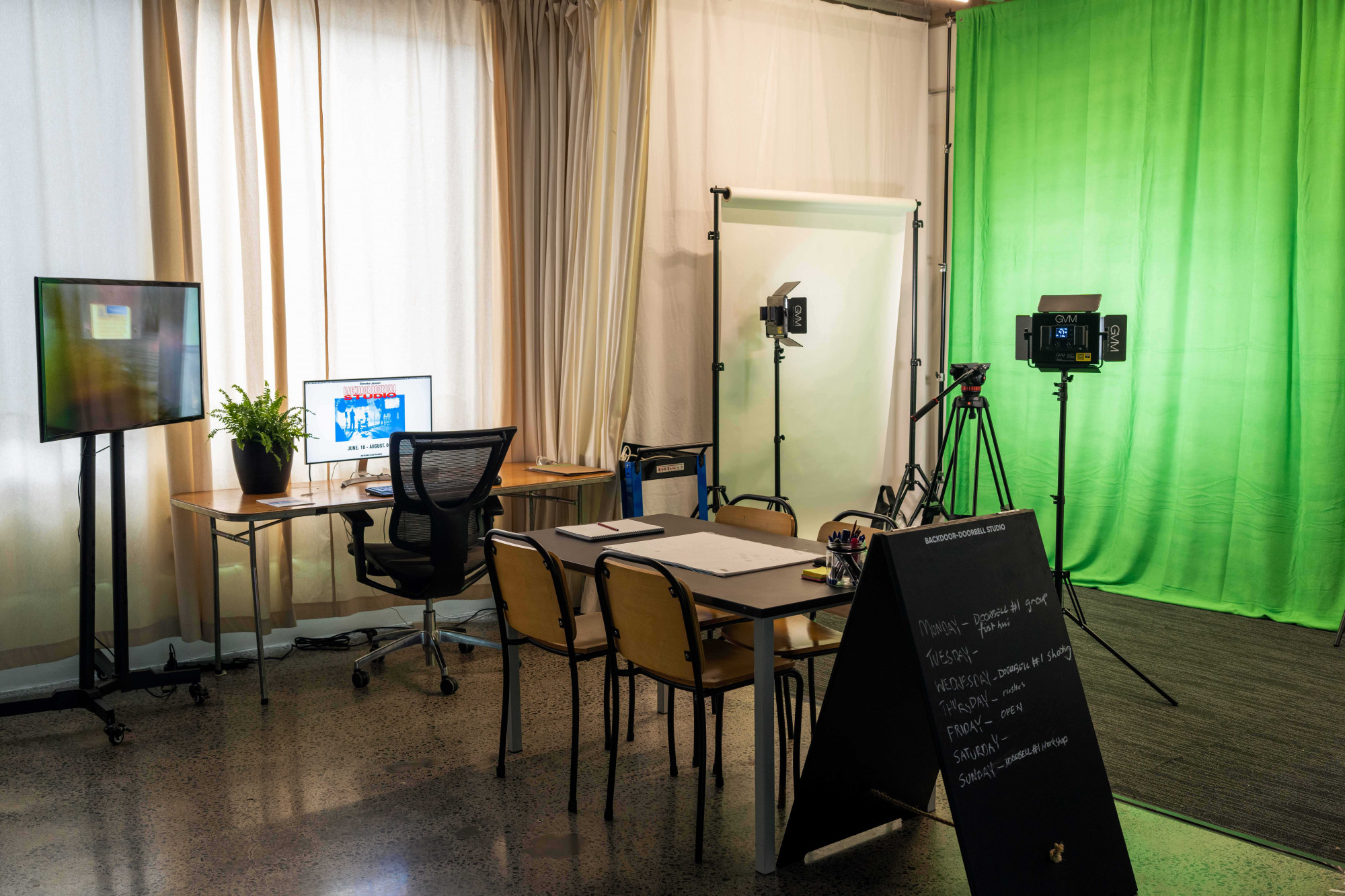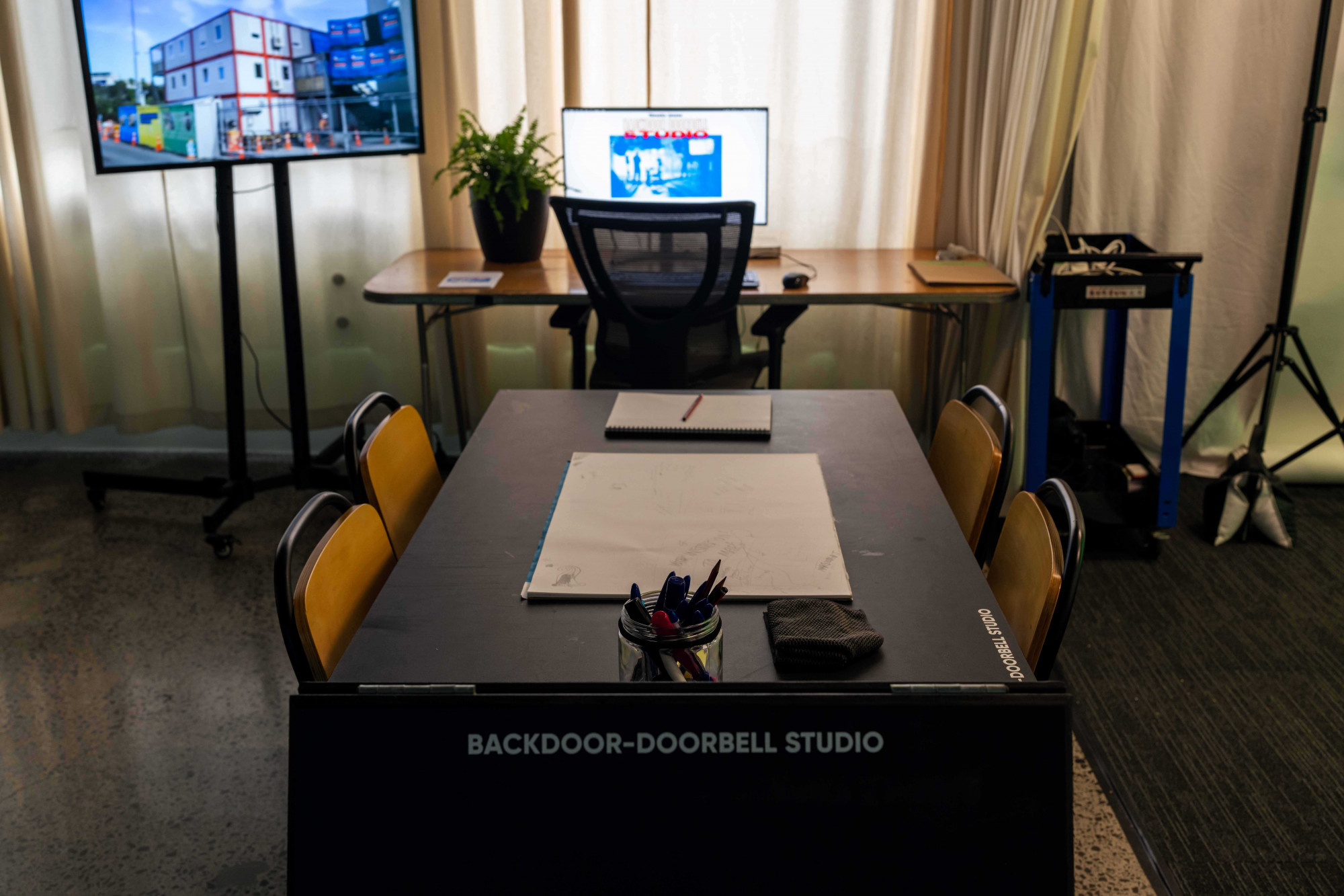 Backdoor-Doorbell Studio is a video making studio run by Dieneke Jansen within Artspace Aotearoa. The studio aims to create a space where neighbours to Artspace Aotearoa can work together to create video narratives over an eight-week period. Backdoor-Doorbell Studio provides a space for collaborative learning with material support from Artspace Aotearoa and assistance in all aspects of making.
