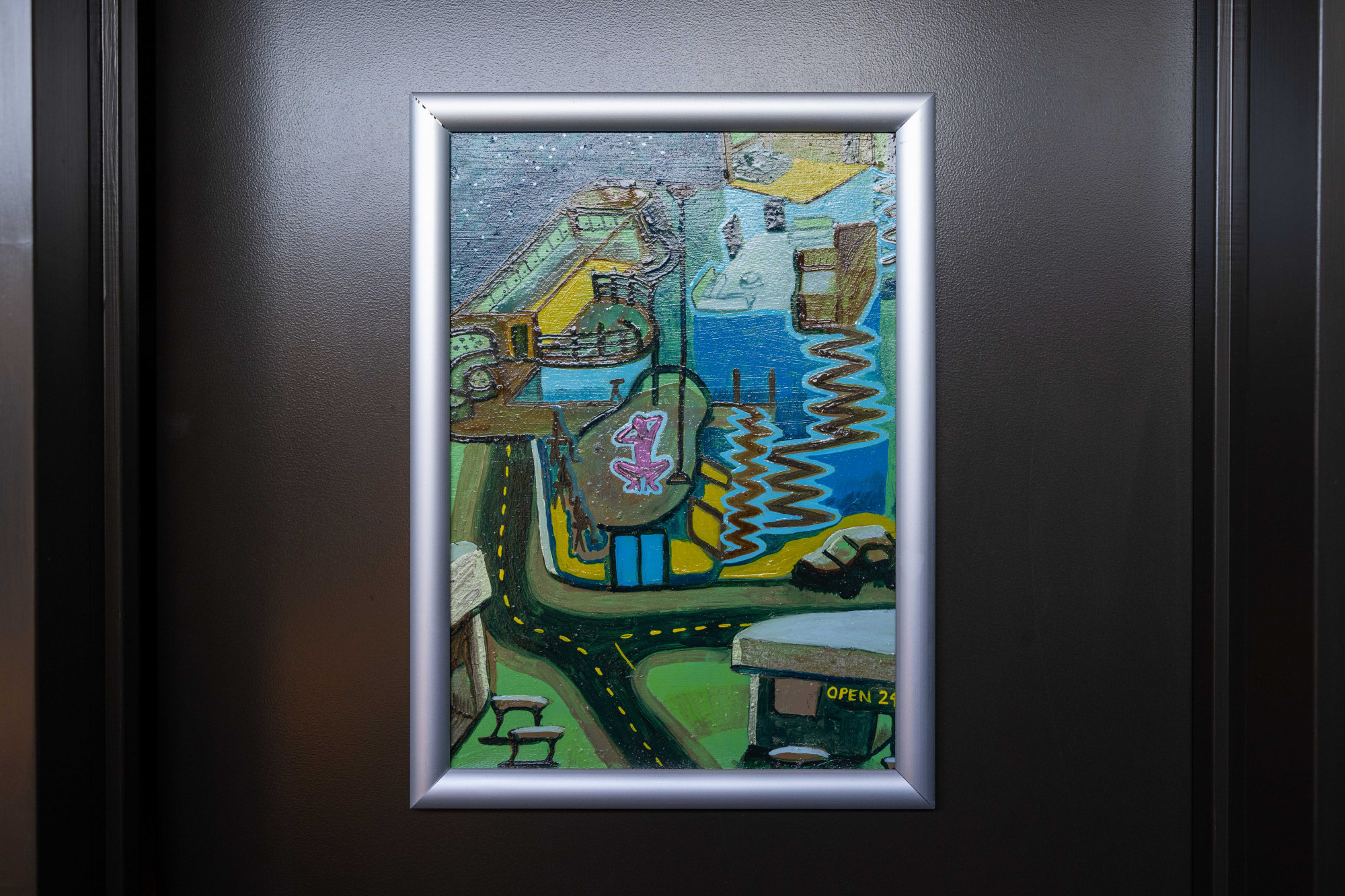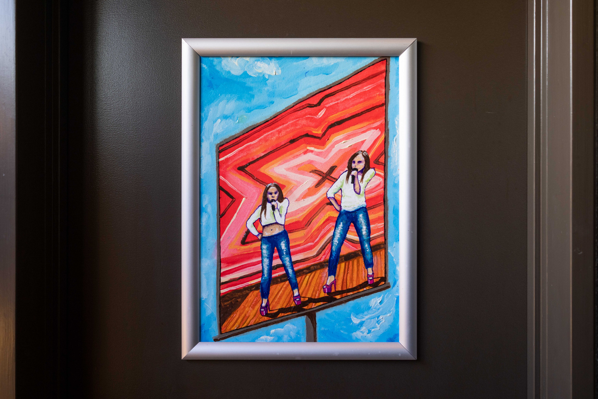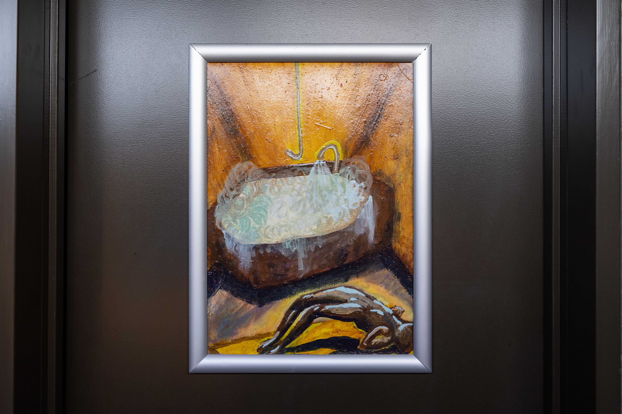 Tipping Rail was born the day Alex McFarlane started stripping 6 years ago, till the day she quit 3 weeks ago. McFarlane represents her home strip club, The Mermaid. Each painting describes a different chapter of the night, and grouped together the paintings form the story of one complete shift at The Mermaid. McFarlane used oil paint with a higher ratio of linseed oil to melt a scene and paint wet on wet, before drying the painting for a couple of weeks and then adding more layers.