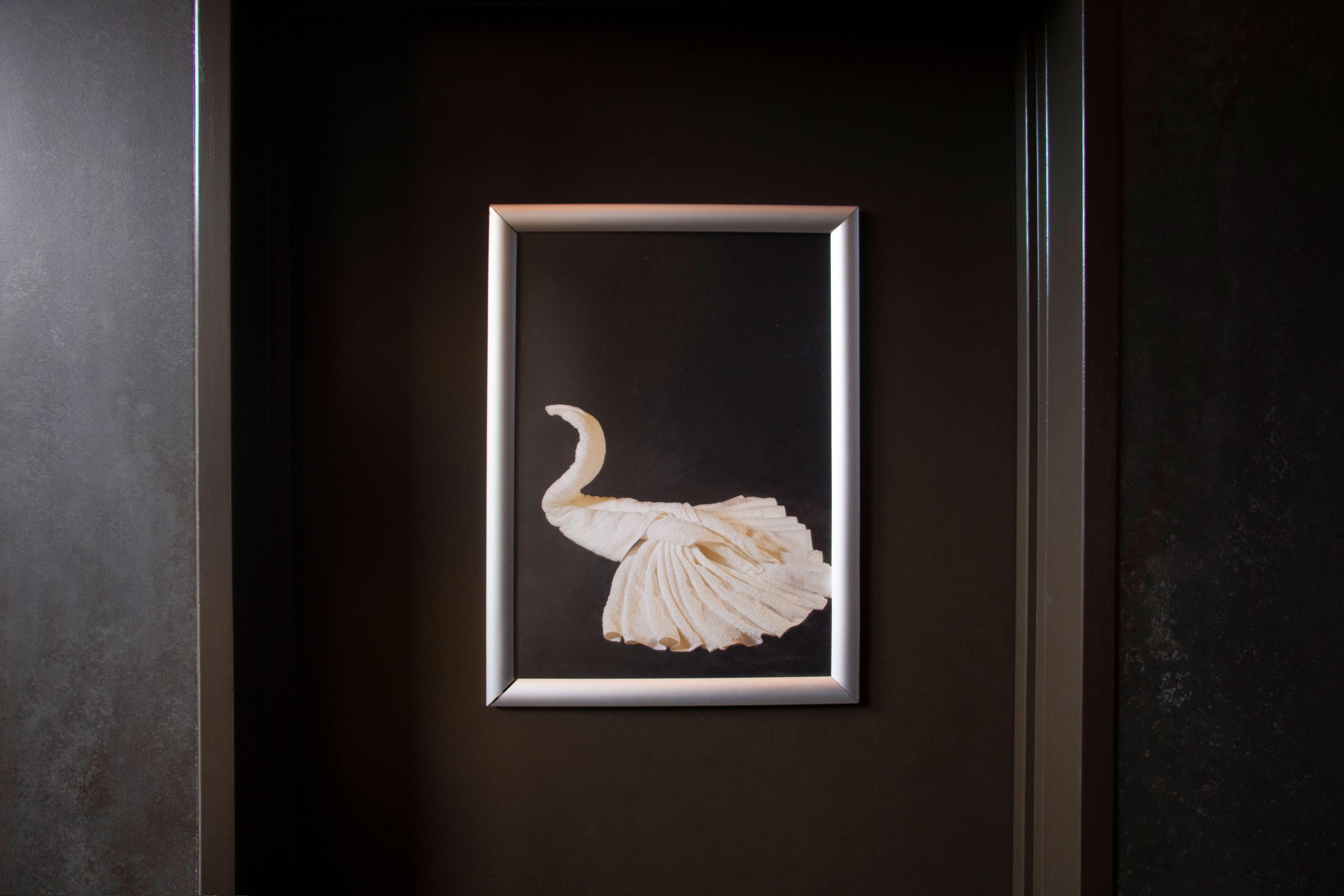 The towel swan is an object which has a particular association for many sex workers. There are stories from people who were taught how to fold one on their first night at work by an older worker, and from others who worked in parlours where each room had a towel swan, which no one working there could reliably re-fold or reproduce, a relic left by a former worker. The swan was therefore carefully and reverently removed from the bed or massage table before each booking, and just as carefully replaced when the room was reset for the next appointment.