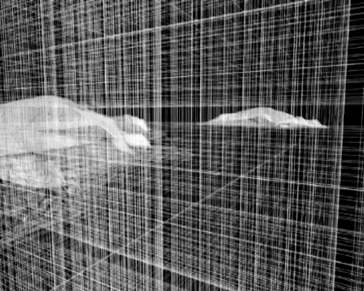 A 3D digital animation of Hauturu Little Barrier Island nature reserve in the Hauraki Gulf is set to the haunting audio track, Adagio Under My Thumb. In this short video cycle Hauturu (Little Barrier), a very early example of New Zealand’s attempt to gain ‘predator free’ sanctuaries, is represented as a simple line drawing on a black background, rotated around over and over as if it was a model rather than a solid land mass. Here the artist plays with differing forms of the native sublime on this occasion represented through the aesthetics of technology.