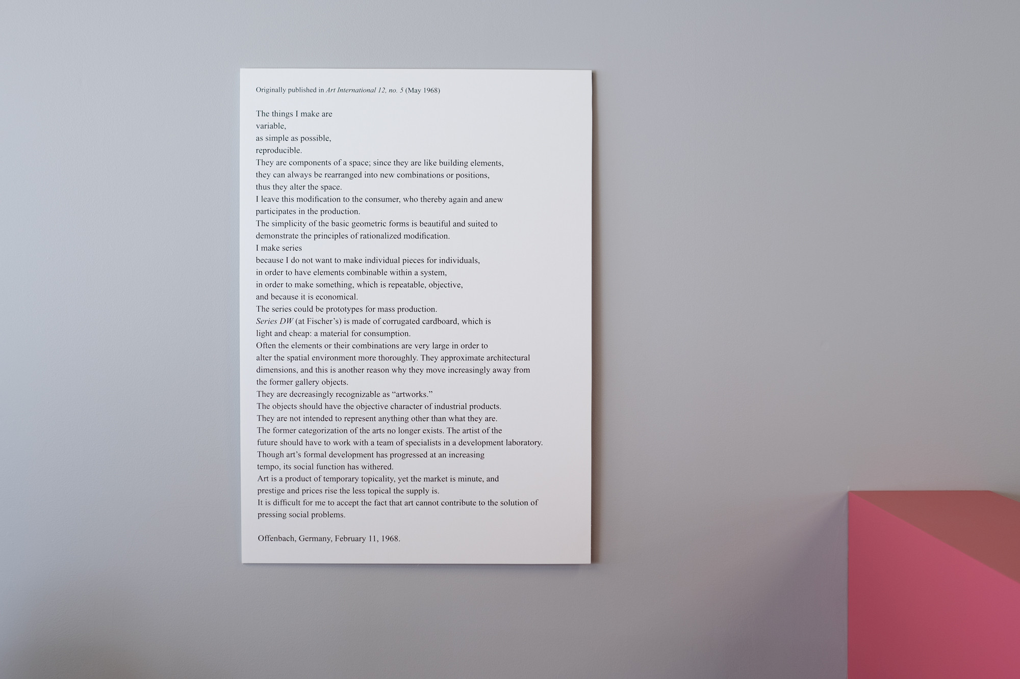 Statement, 1968. Charlotte Posenenske.