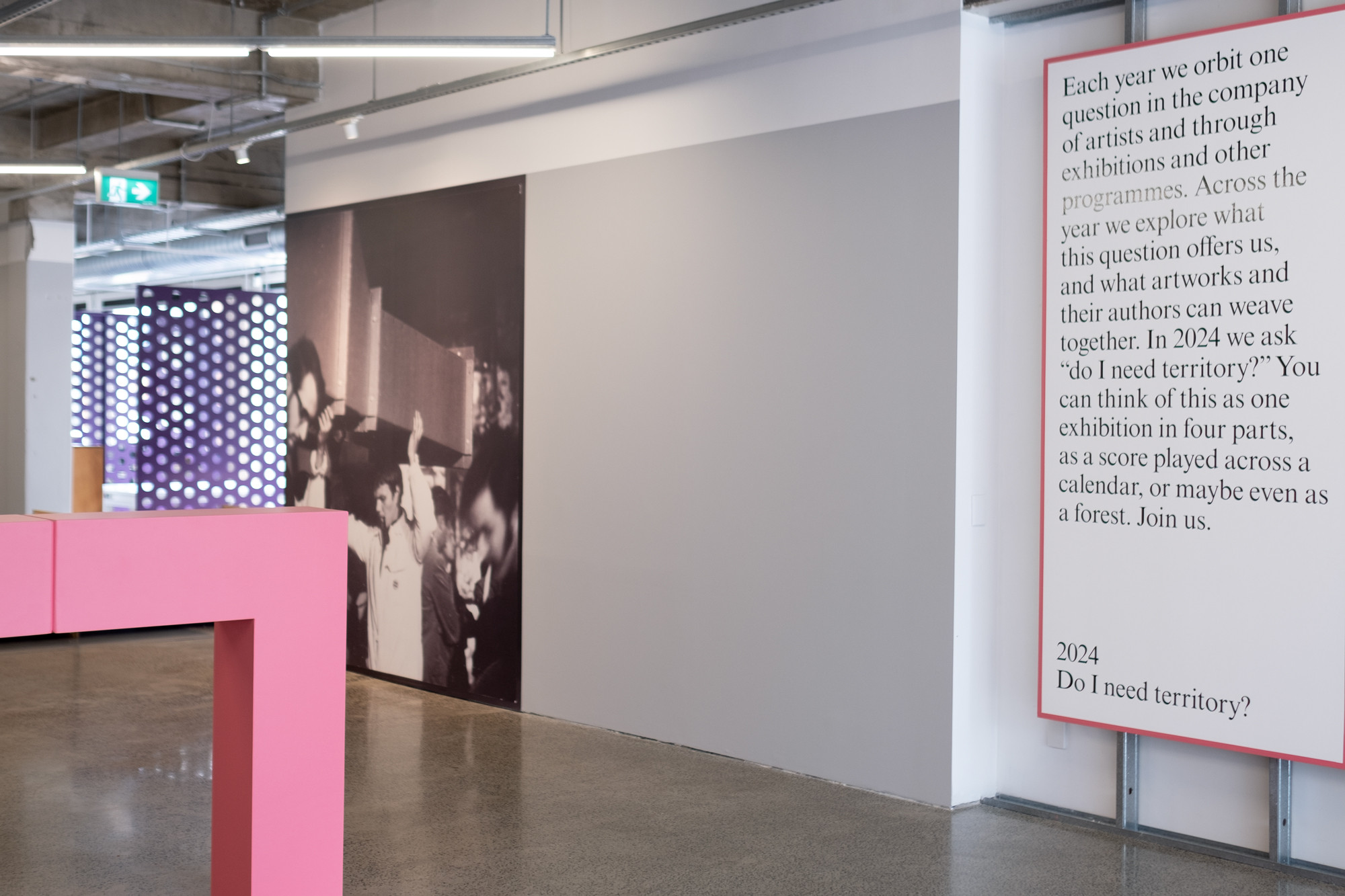 Each year we orbit one question in the company of artists through exhibitions and other events. Across the year we explore what this question offers us and what artworks and their authors can weave together. In 2024 we ask “do I need territory?” You can think of this as one exhibition in four parts, as a score played across a calendar, or maybe even as a forest. Join us.