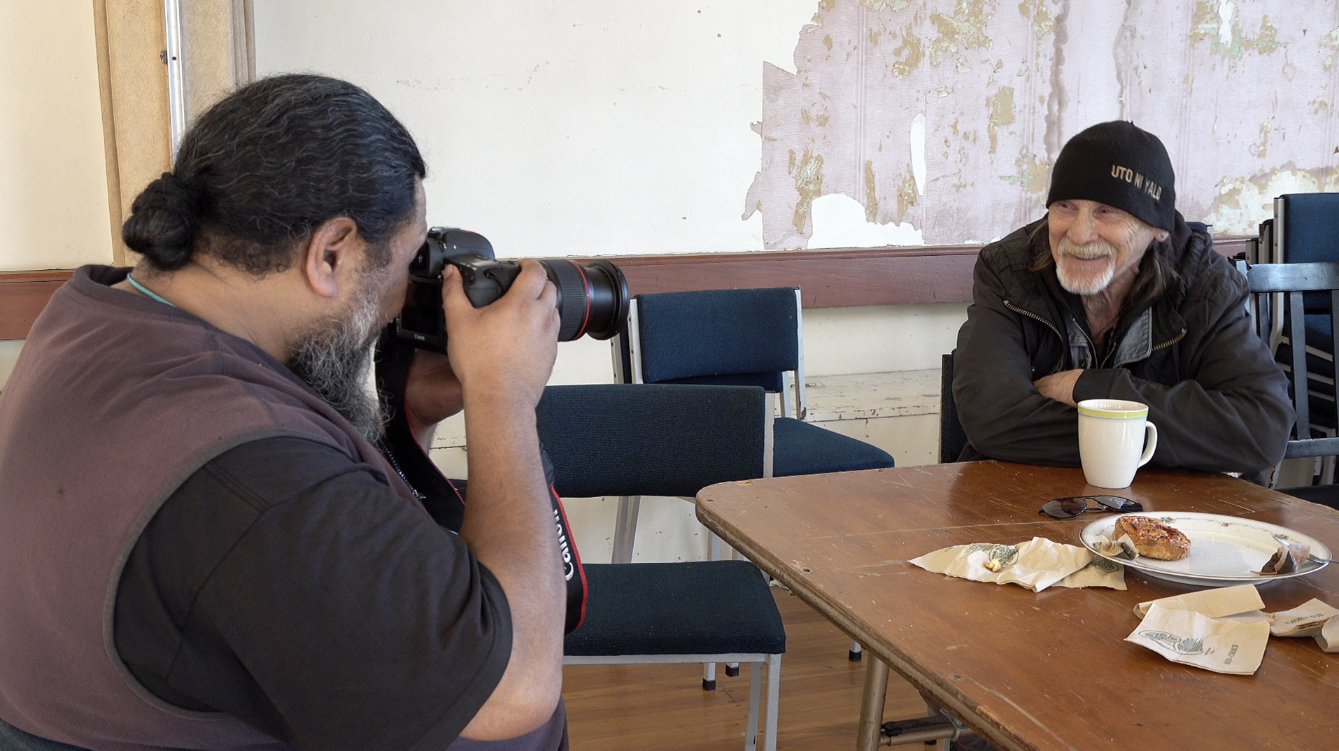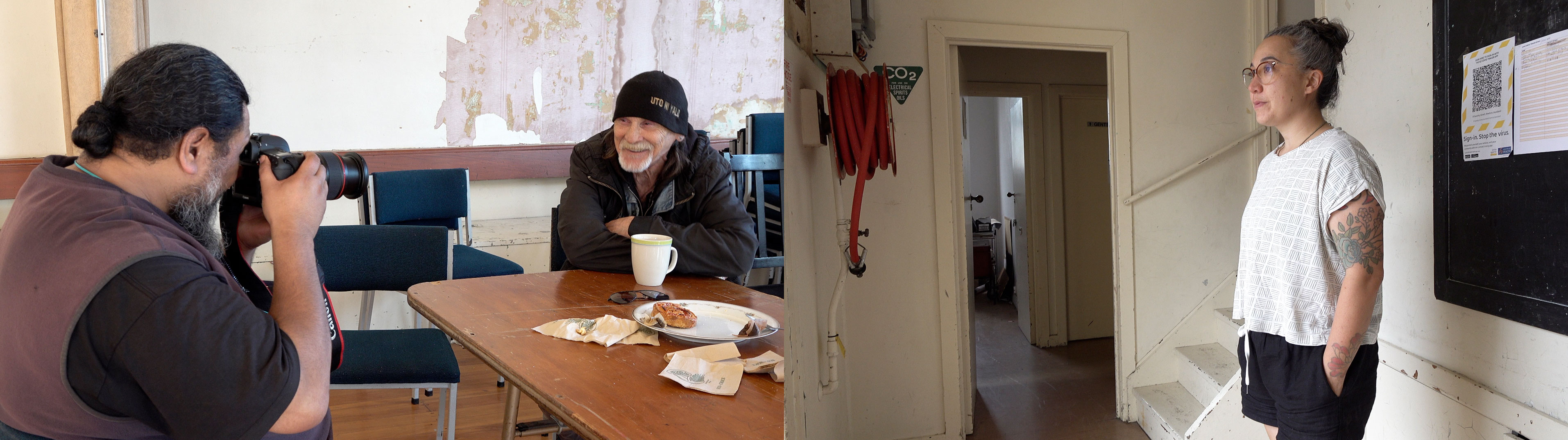 Shadow’s Studio is a photographic project created within the local Karangahape Road district which is also home to Artspace Aotearoa. Through a series of convivial photo-shoots taken at the local community space Old Folks Association, artist and subject enjoyed a social interaction of company and sharing of kai: scones.