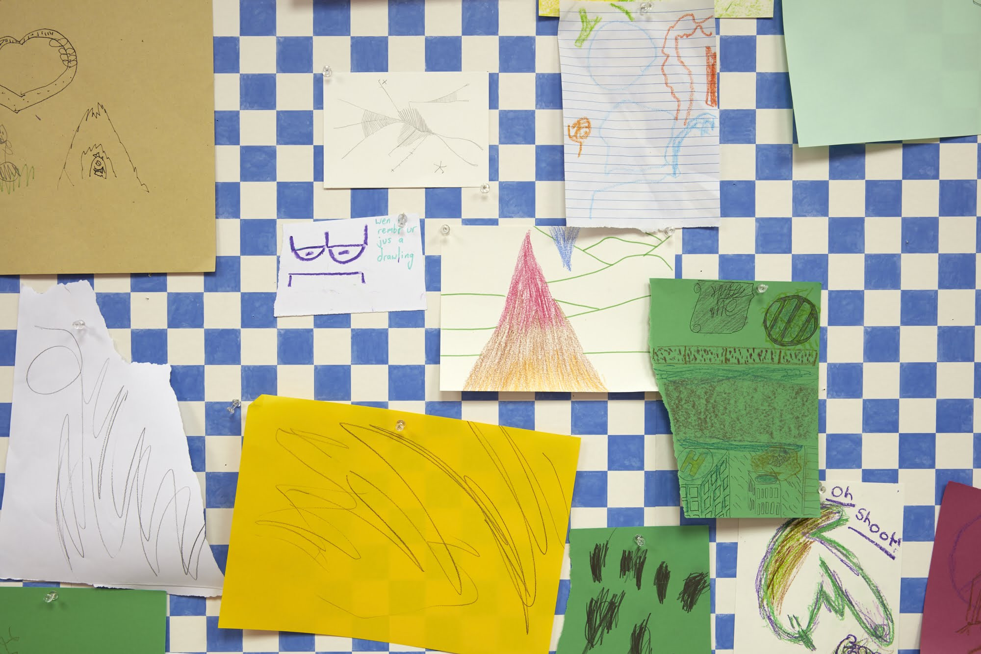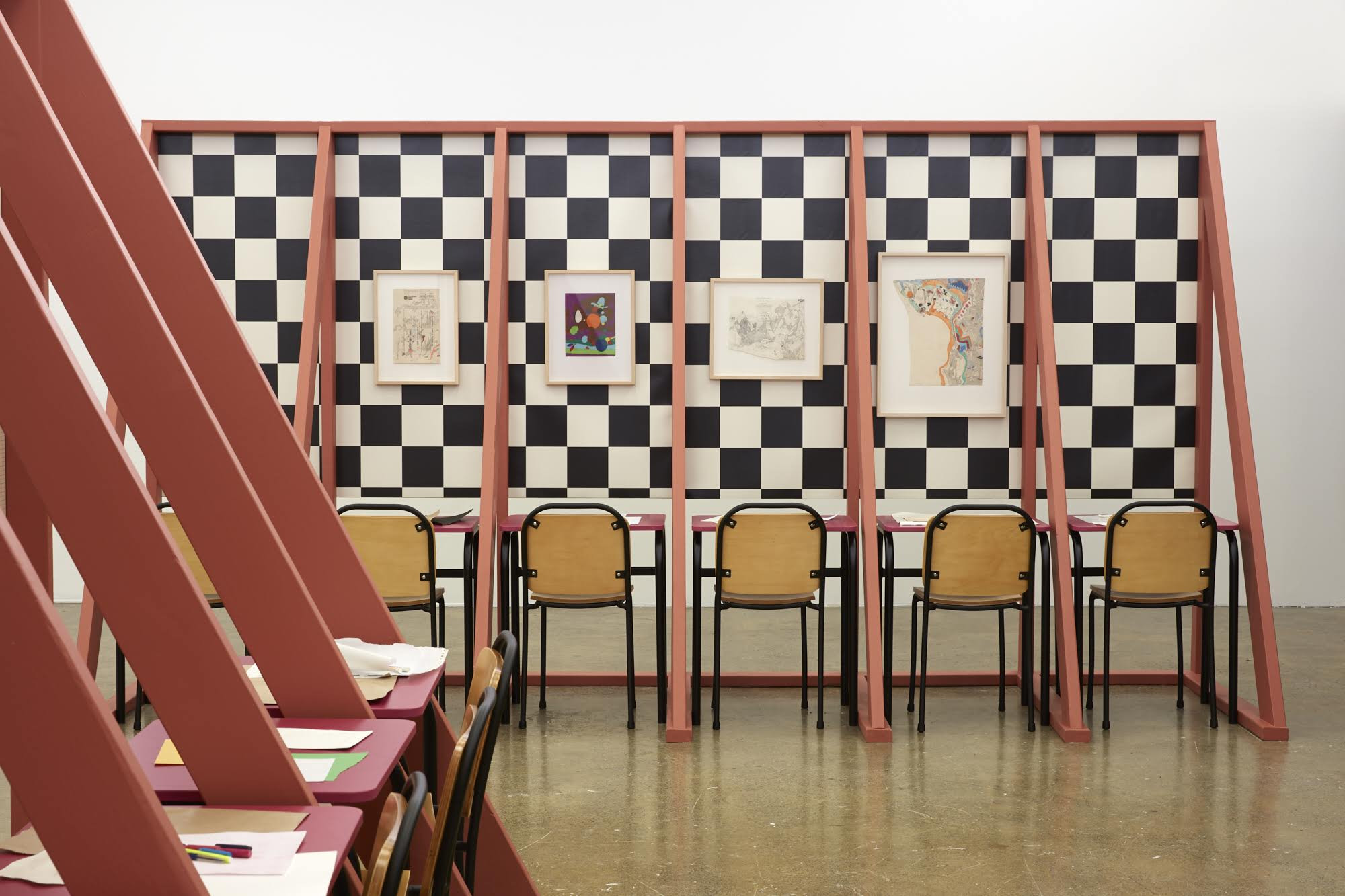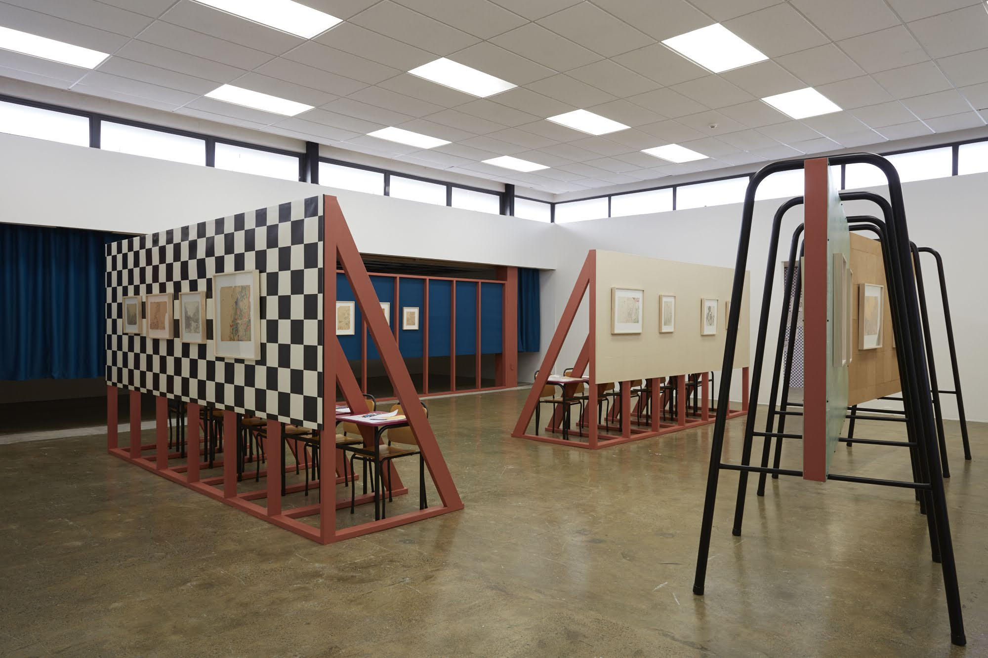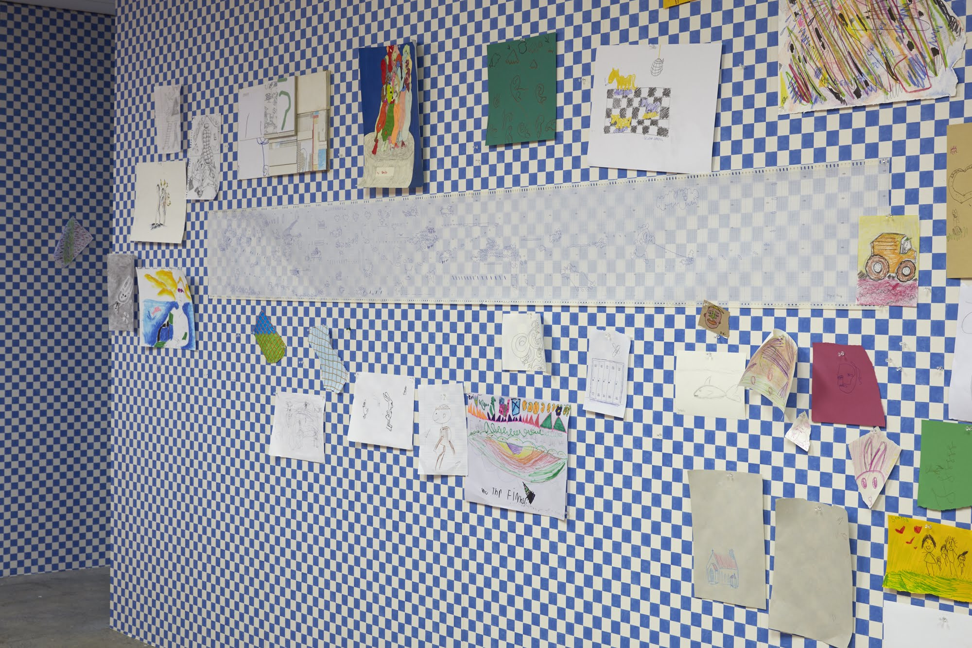 Just as King’s works from this period toy with impulses of human nature and movement, the exhibition's structural interventions challenge the function of the gallery space. The outside world is drawn into the institutional space, animating it with semblances of the private. This utilitarian environment, by exhibition designer Anto Yeldezian, proposes a democratic relationship between viewer and work. Taking cue from King’s imagery, Paperdwellers experiments with malleable and plastic natures, reimagining ourselves as writable, drawable, and erasable. It offers a domain for the act of making and thinking as modes that shape both the world and the self.