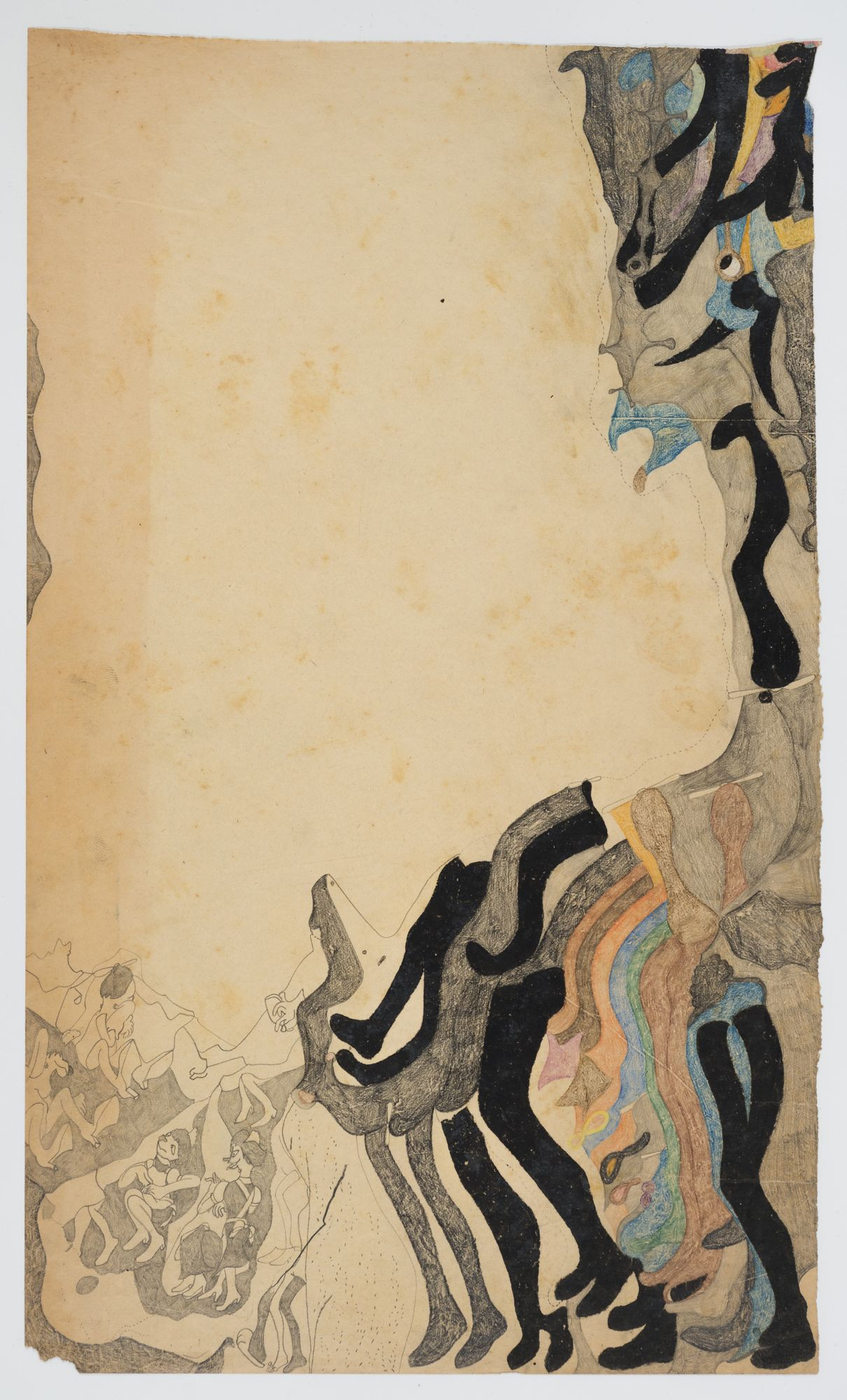 - Untitled, Susan Te Kahurangi King, graphite, coloured pencil and crayon on paper, c.1975 – c. 1980.