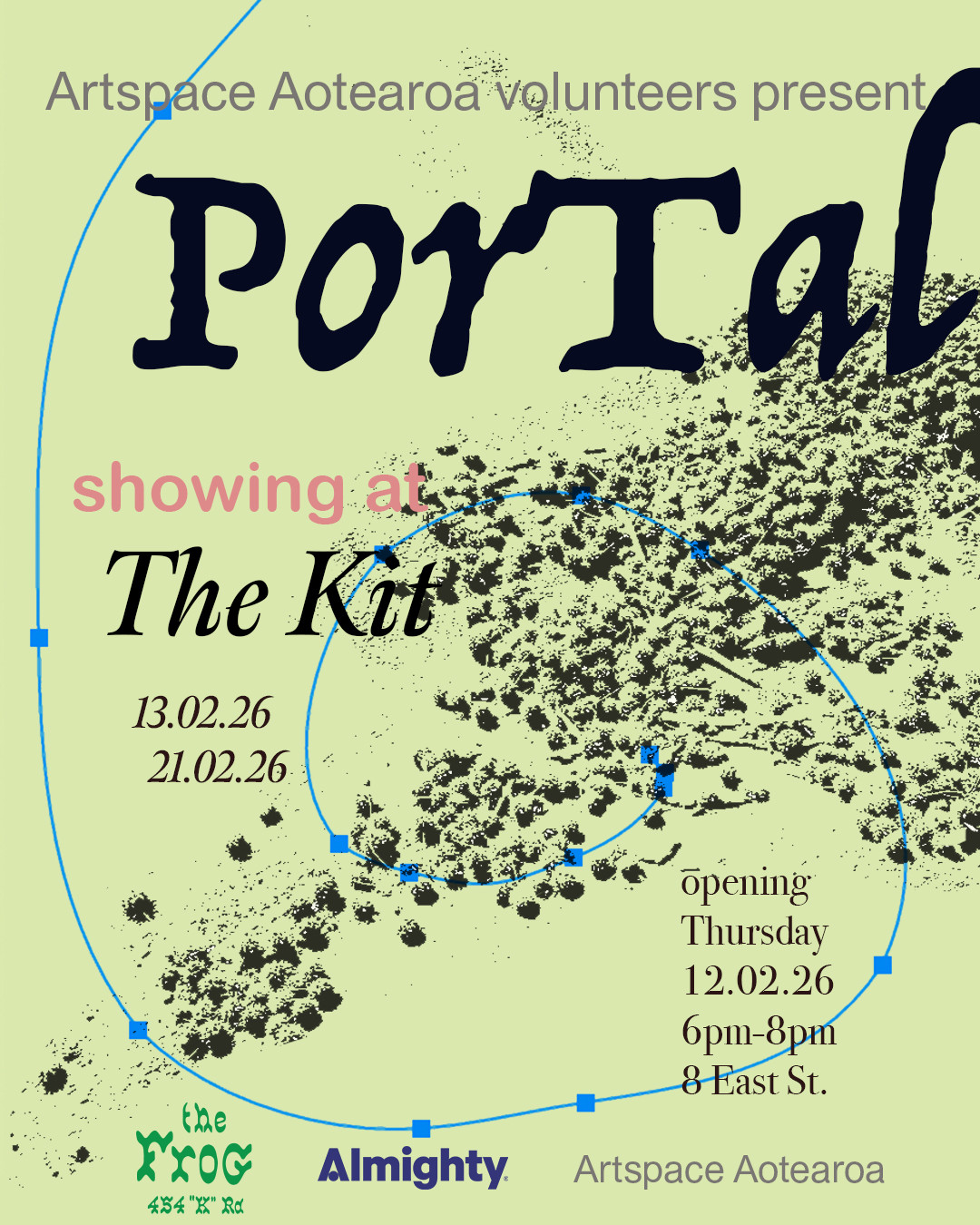 Portal brings together 17 artists who have volunteered at Artspace Aotearoa over the past two years. Through collective reflection, each artist has redeveloped an existing work in response to their shared experience, forming an interconnected circuit of renewed practices.